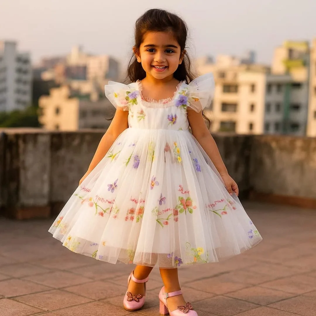 আউটার লেয়ার: মাল্টি লেয়ার সফট টিউল উইথ ফ্লোরাল এমব্রয়ডারি।