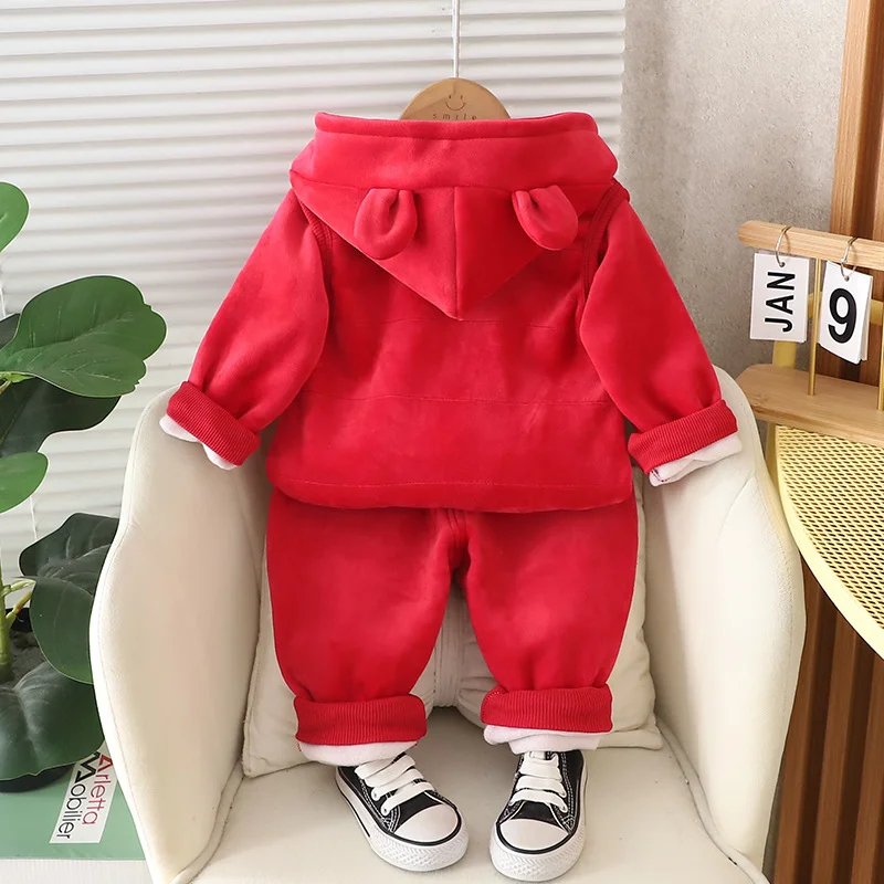 Kids 3-Piece Red Apple Winter Set (Hoodie + T-Shirt + Pant).