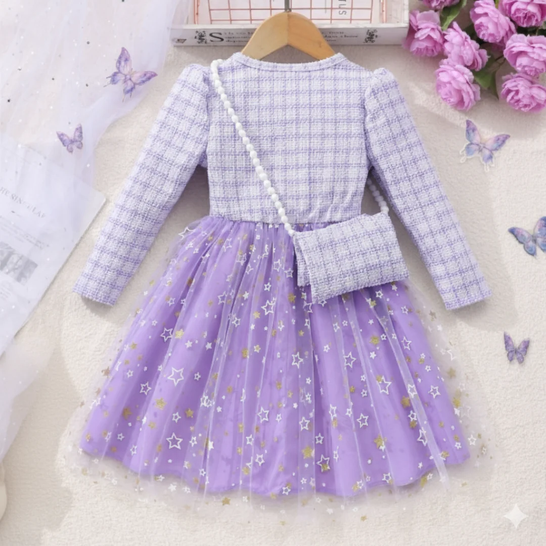 ✓ ডিজাইন:ল্যাভেন্ডার টপে চেক ডিজাইন এবং গোল পকেটের বোতাম কোমরে স্নাগ ফিট, আরামদায়ক ফিট স্কার্টে সোনালী ও সাদা স্টার প্রিন্ট সহ টুল লম্বা হাতা এবং সিম্পল, এলিগেন্ট স্টাইল।