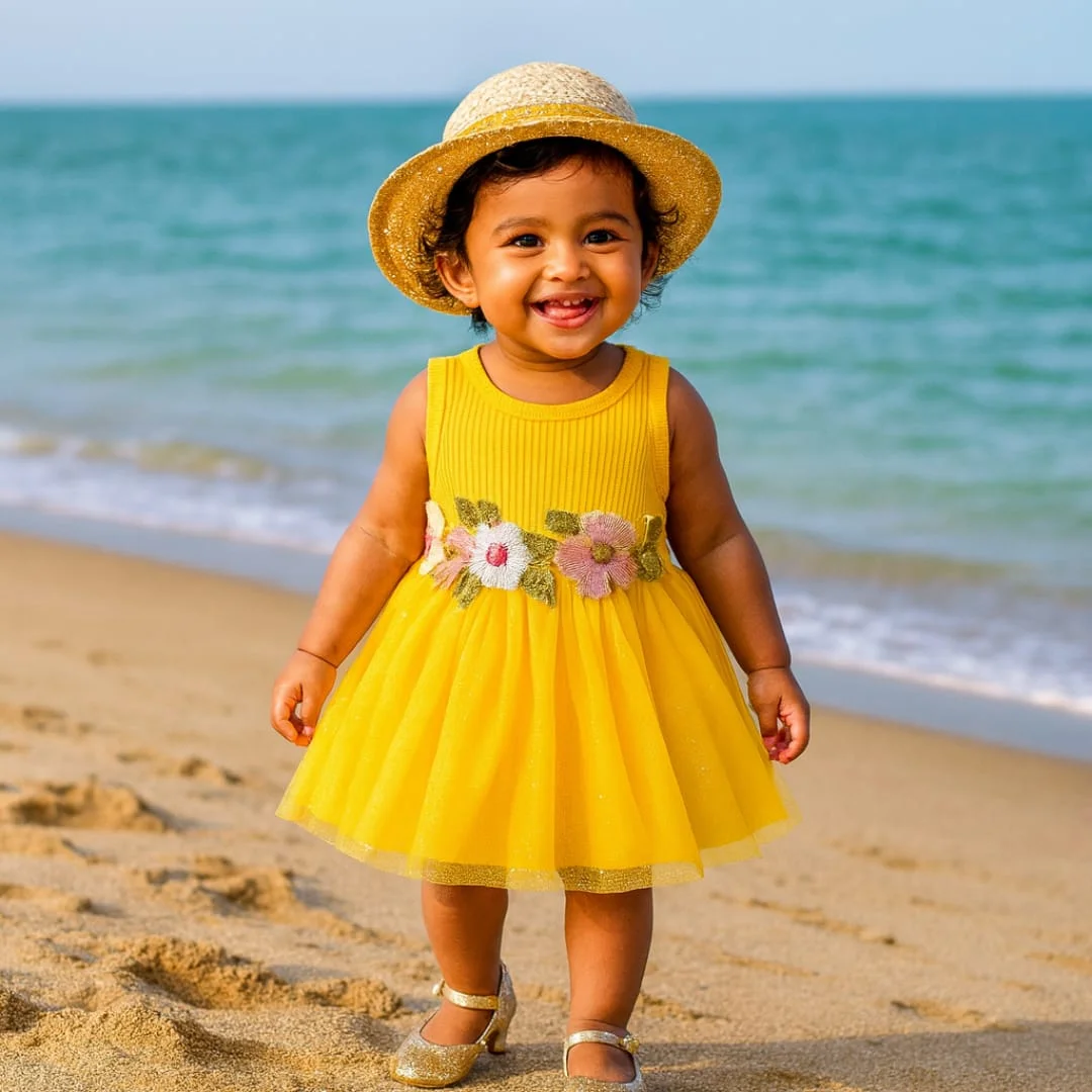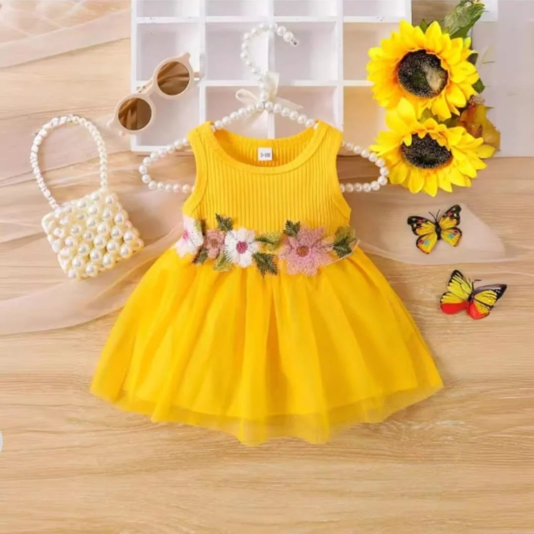বডি পার্ট: নিটেড কটন টপ, কোমরে ফ্লোরাল অ্যাপ্লিক ডিজাইন